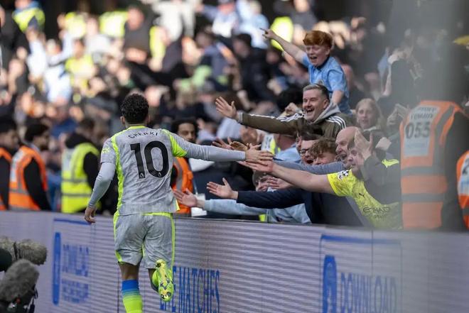 比赛第51分钟,Cherki那脚传中找到O'Reilly头球破门,算是打开了局面。之后角球配合里他再送助攻,Guehi抽射得手。全场跑下来,这位1月从里昂3400万英镑签来的法国人确实踢出了德布劳尼接班人的样子。